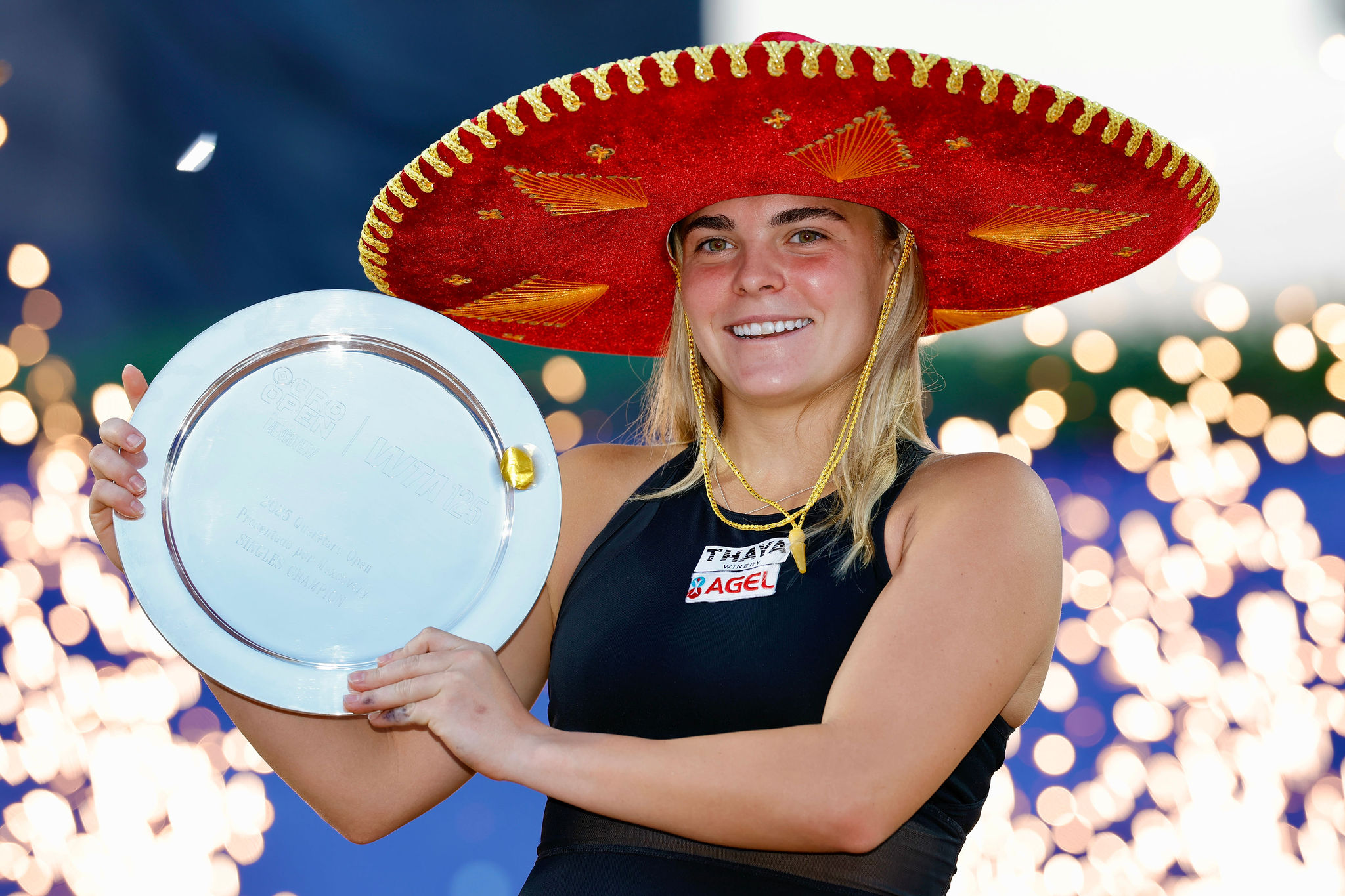 Querétaro, Qro, 26 de octubre de 2025.- La checa Sara Bejlek se proclamó campeona del Querétaro Open presentado por Mexcovery, al imponerse por 6-2 y 6-1 a la estadounidense Katrina Scott.